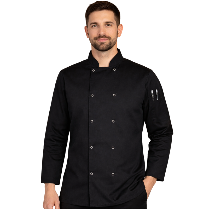 Upgrade your kitchen uniform with this professional chef jacket, designed for comfort, durability, and performance in fast-paced environments. Ideal for chefs, cooks, and catering staff, this unisex long sleeve chef coat delivers a clean, modern look while providing essential protection during service.